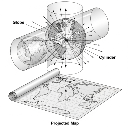 本章介紹「坐標網格」與「地圖投影」兩大核心概念。坐標網格(如經緯度、UTM、國土座標)提供精確定位的共同語言;地圖投影則說明將地球球面轉換為平面的數學方法與取捨。學習本章可理解: 地圖一定有變形、 變形如何影響判讀與決策、以及在各種場景中(導航、防災、資源分配、環境監測)挑選適合的投影與座標系。